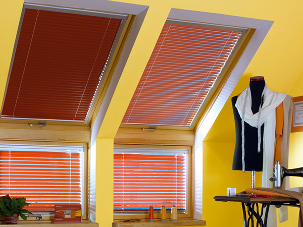 Для наклонных мансардных окон используются рулонные, горизонтальные или жалюзи плиссе.